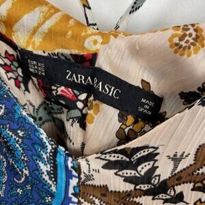 ZARA boho patchwork jumpsuit in a light, semi-sheer weave—perfect for festival season, brunch, or beach vacations. Flowy, comfy one-and-done style you can dress up with heels or down with sandals. Size XS; see photos for fabric tag and measurements.