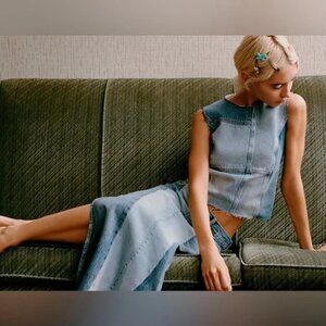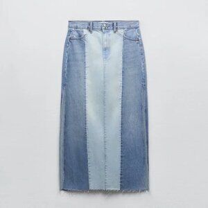 ZARA Patchwork Denim Jean Side Slit Skirt NWT Size XS