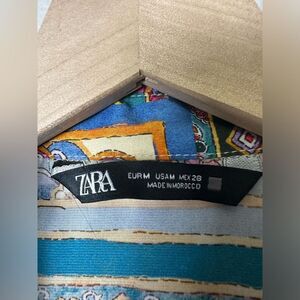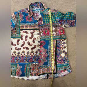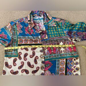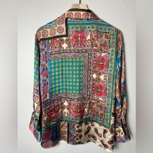 ZARA Patchwork scarf Print Satin Effect Shirt buttondown blouse boho 70’s Sz M