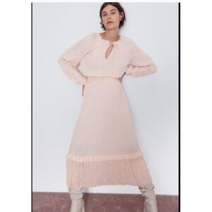 ZARA Peach Pink Maxi Pleated Voluminious Dress Size S