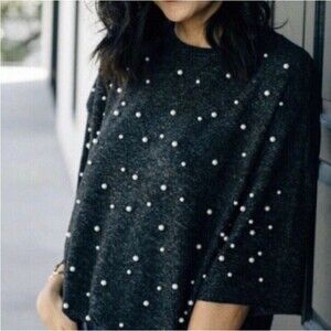 ZARA Pearl Buttery Soft Touch Sweater Charcoal Grey Oversized SZ S. Condition is Pre-owned. Shipped with Economy Shipping.