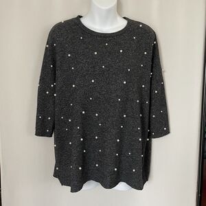 ZARA Pearl Buttery Soft Touch Sweater Charcoal Grey Oversized 3/4 Sleeves SZ S