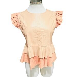 ZARA Peplum Blouse Faux Leather and Fabric Salmon Color Size Small