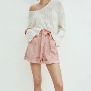 💕 ZARA Pink Paperbag Oversize Shorts Bowtie Size 4 Small