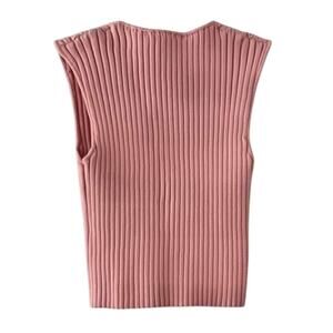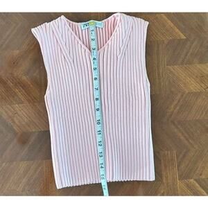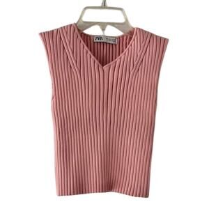 ZARA Pink Ribbed Knit Sleeveless Tank Top Women’s Medium V-Neck Cropped