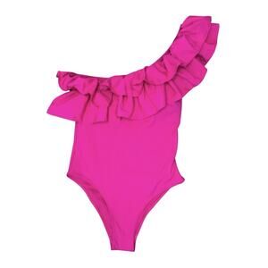 ZARA Pink Ruffled One Shoulder Bathing Suit Bodysuit Designer Inspired Size M