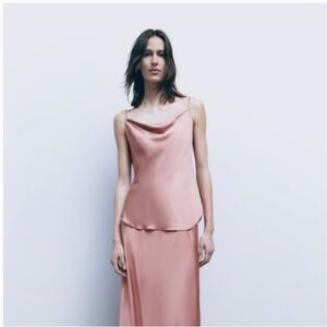 Dusty rose, Spaghetti straps Draped neckline, Low back
