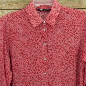 ZARA Pink/Red Oversized Print Blouse M