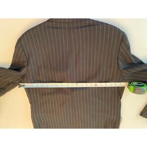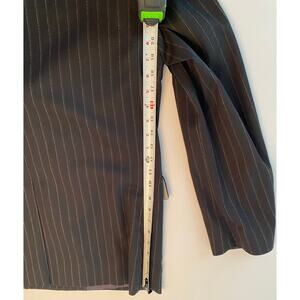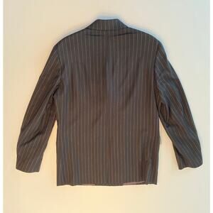 This ZARA pinstripe blazer offers a refined take on classic tailoring with a contemporary edge. Crafted from a structured woven fabric, it features sharp lapels, flap pockets, and subtle shoulder padding for a clean, powerful silhouette. The soft pinstripe pattern adds sophistication, while the slightly oversized cut gives it a modern, relaxed drape — perfect for pairing with trousers, denim, or layered over a tee for an effortless, chic look. Fully lined with button cuffs and a single-button front closure.