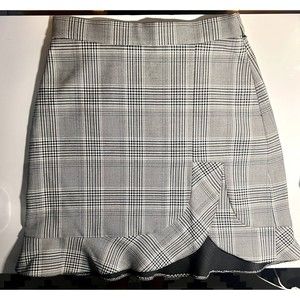 ZARA Plaid Mini Shirt Ruffle Detail XS 0/2 Black and Grey High Waist