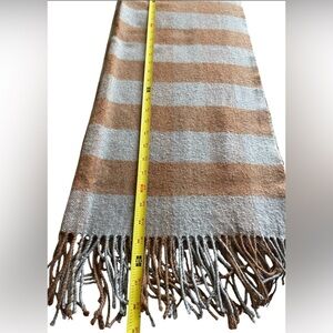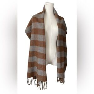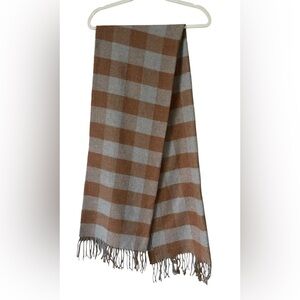 Stylish plaid scarf featuring brown and gray tones. Perfect for adding warmth and style.