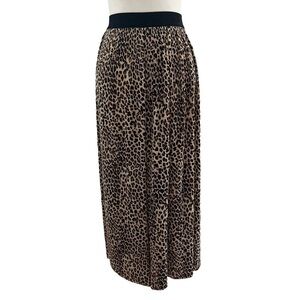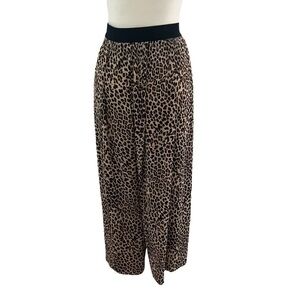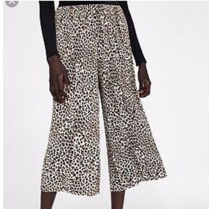 ZARA Pleated Leopard Wide Leg Velvet Waistband Culotte Trousers