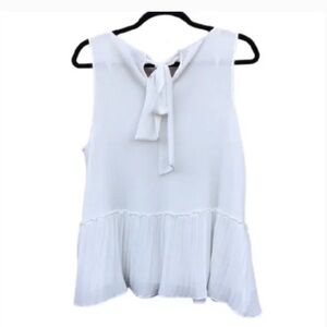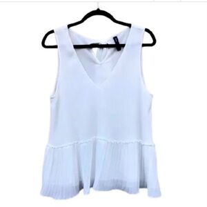 ZARA Pleated V-Neck White Peplum Ruffle Swing Tank Top