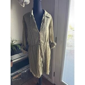 Effortlessly chic ZARA shirt dress featuring a soft light green base with an abstract black polka dot stripe pattern. This long sleeve button-front dress has a relaxed fit, adjustable sleeves, and a slightly gathered waist for a flattering, easygoing silhouette. Perfect for work, brunch, or casual weekends — pair it with boots, sneakers, or sandals for a stylish year-round look.