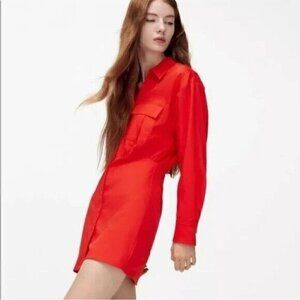 ZARA RED POPLIN SHIRT DRESS 7385/331 Size XS NWT