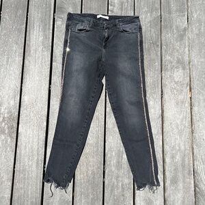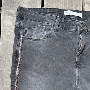 ZARA Premium Crafted Grey Stretch Skinny Jean w/beaded trim Size 10 Inseam 26" Waist 31"