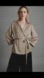 Blouse with V-neck lapel collar. Long full cut sleeves. Self belt. Front double breasted button closure.