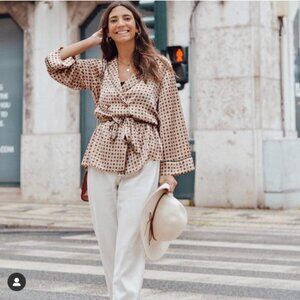 ZARA Printed Pajama Blouse Size XS NEW WITH TAG!
