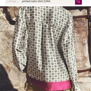 ZARA Printed Satin Shirt Small size small (full cut) Multicolored Bohemian Pink band trim With tags NWT