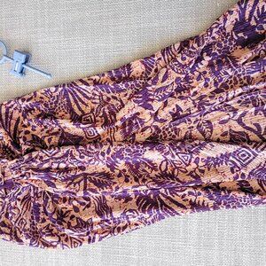ZARA Printed Two-Piece Set – Boho Purple & Tan Crop Top + Midi Skirt | Size XS