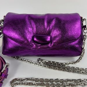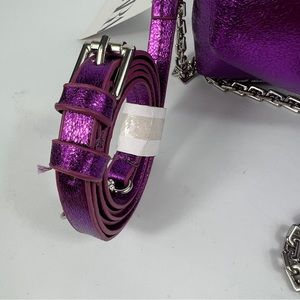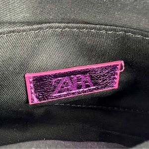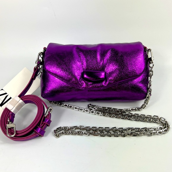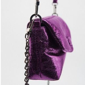 Brand new with tag. An absolute must have! You'll love the vibrant purple color of this crossbody bag by ZARA. It features a metallic effect, matching shoulder crossbody strap, detachable silver tone link chain strap, magnetic/flap closure. See attached photos for approximate measurements. STUNNING!