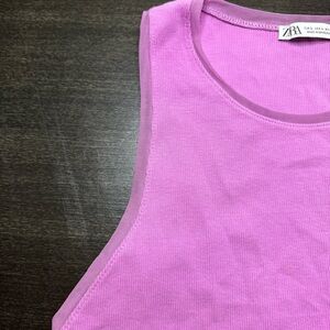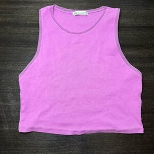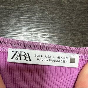 ZARA Purple Ribbed Bralette Crop Top L Racerback Mesh Trim