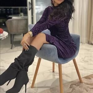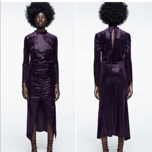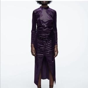 ZARA Purple SEQUIN MIDI DRESS Size Extra Small XS