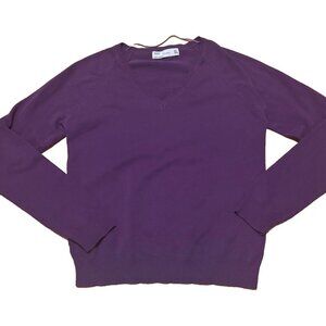 ZARA Purple SOFT Cotton/Nylon Blend V-Neck Long Sleeve Womens Sweater Size Large