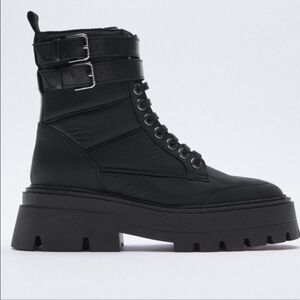 ZARA QUILTED NYLON LOW HEEL ANKLE BOOTS Size 7