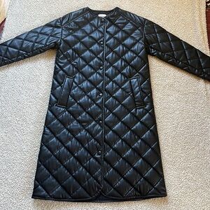 ZARA Quilted Faux Leather Longline Jacket Size XS