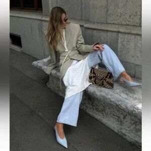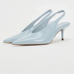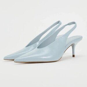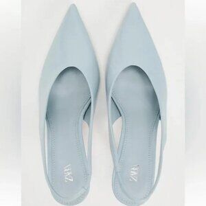 ZARA REAL LEATHER HEELED SLINGBACK KITTEN HEEL LEATHER SHOE