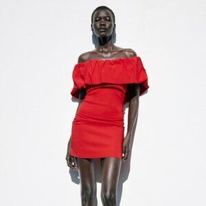 ZARA RED RUFFLE MINI DRESS