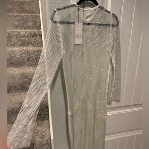 ZARA RHINESTONE MESH DRESS white sparkly size xs/s NWT