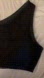 Asymmetrical neckline top with wide strap. Rhinestone appliqués. Side hidden snap button closure.