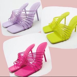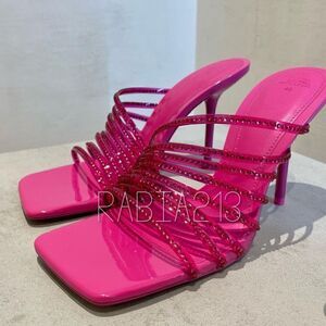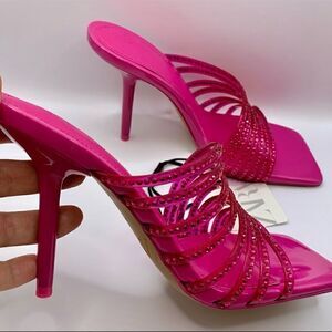 ZARA RHINESTONE VINYL HIGH HEEL SANDALS Barbiecore Barbie Core