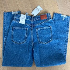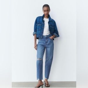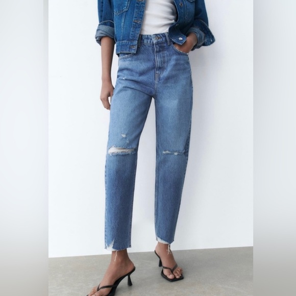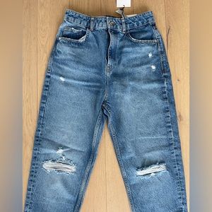 ZARA RIPPED HIGH RISE MOM JEANS