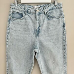 ZARA RIPPED HIGH WAIST STRAIGHT LEG JEANS Light Blue 40 / US 8