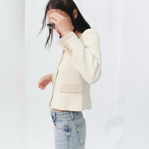 ZARA ROUND NECK TEXTURED BLAZER SIZE L