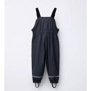 Rubberized overalls with straight neck and adjustable elastic straps.
