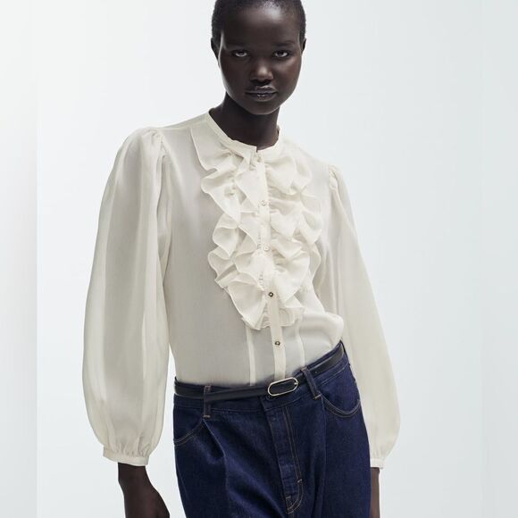 ZARA RUFFLED SEMI-SHEER TOP ECRU NWT