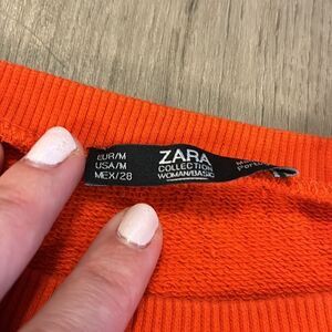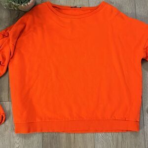 ZARA RUSCHED SLEEVE SWEATSHIRT REDDISH ORANGE SIZE MEDIUM