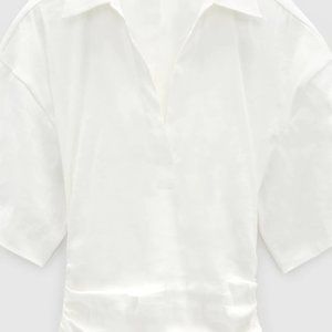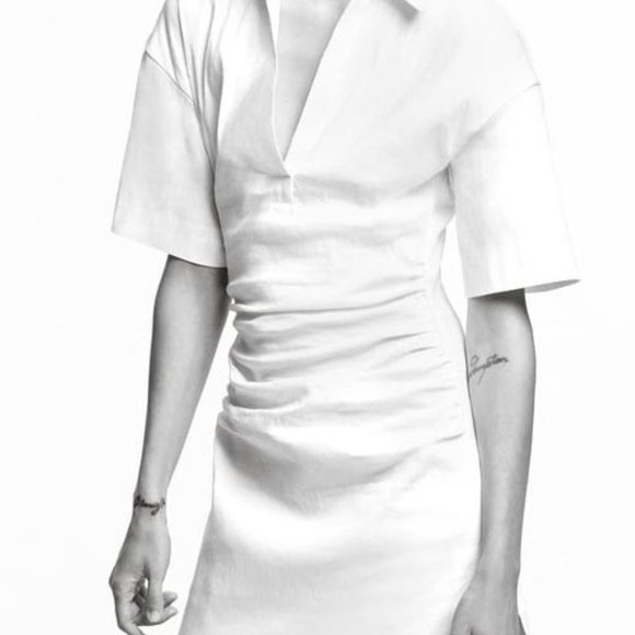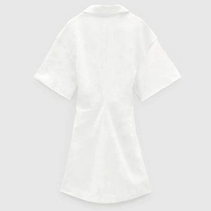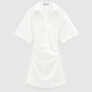 Zara Rustic Ruched Dress SHORT DRESS MADE OF STRETCH LINEN BLEND FABRIC. LAPEL COLLAR AND V-NECKLINE WITH SHORT SLEEVES. SIDE VENTS AT HEM. RUCHING DETAIL. SIDE HIDDEN IN-SEAM ZIP CLOSURE. Zara Size XS