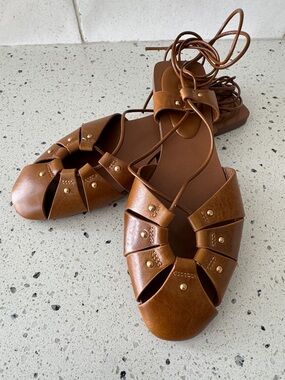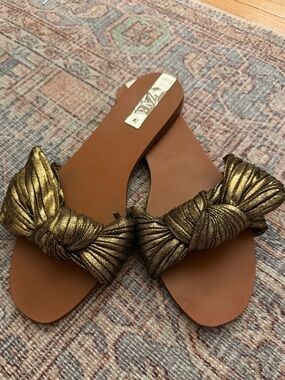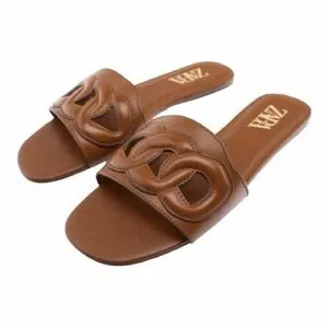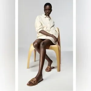 ZARA Raised Detail Brown Leather Slides. Size EU 37/US 6.5