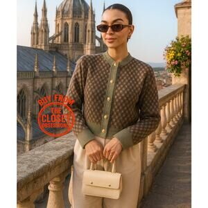 Rare SOLD-OUT ZARA wool-blend knit cardigan featuring a multicolored jacquard pattern, round neckline, and signature gold button front closure. Thick, soft knit with beautiful structure. Size L, new with tags.