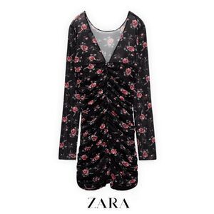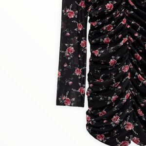 ZARA | Red & Black | FLORAL PRINT TULLE MINI DRESS