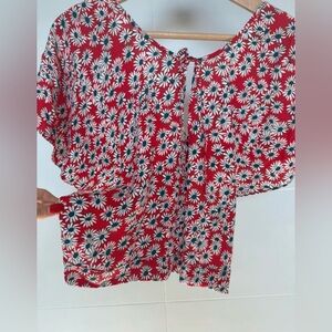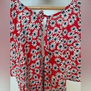 ZARA Red Daisy Print Tie-Back Crop Top Size Medium