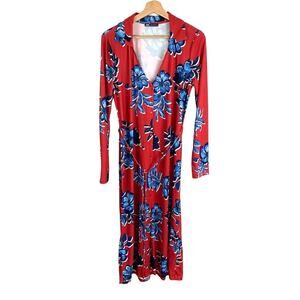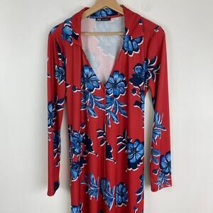 ZARA Red Floral Button-Down Midi Dress M — Cottagecore Coquette Wedding Guest