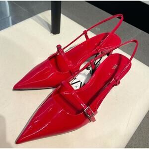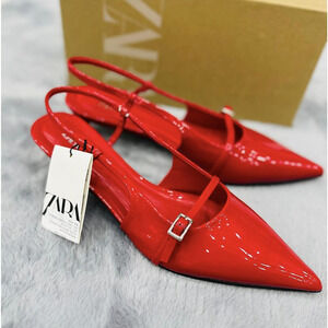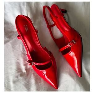 ZARA Red Patent Kitten Heels NWT | Viral Slingback Pumps