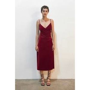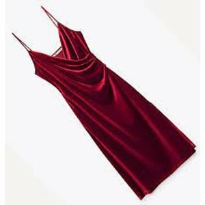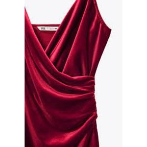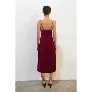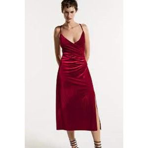 ZARA Red Pleated Velvet Midi Dress XL NWT