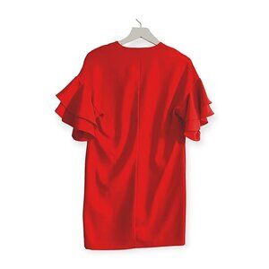ZARA Red Shift Dress with Ruffle Sleeves Size XS